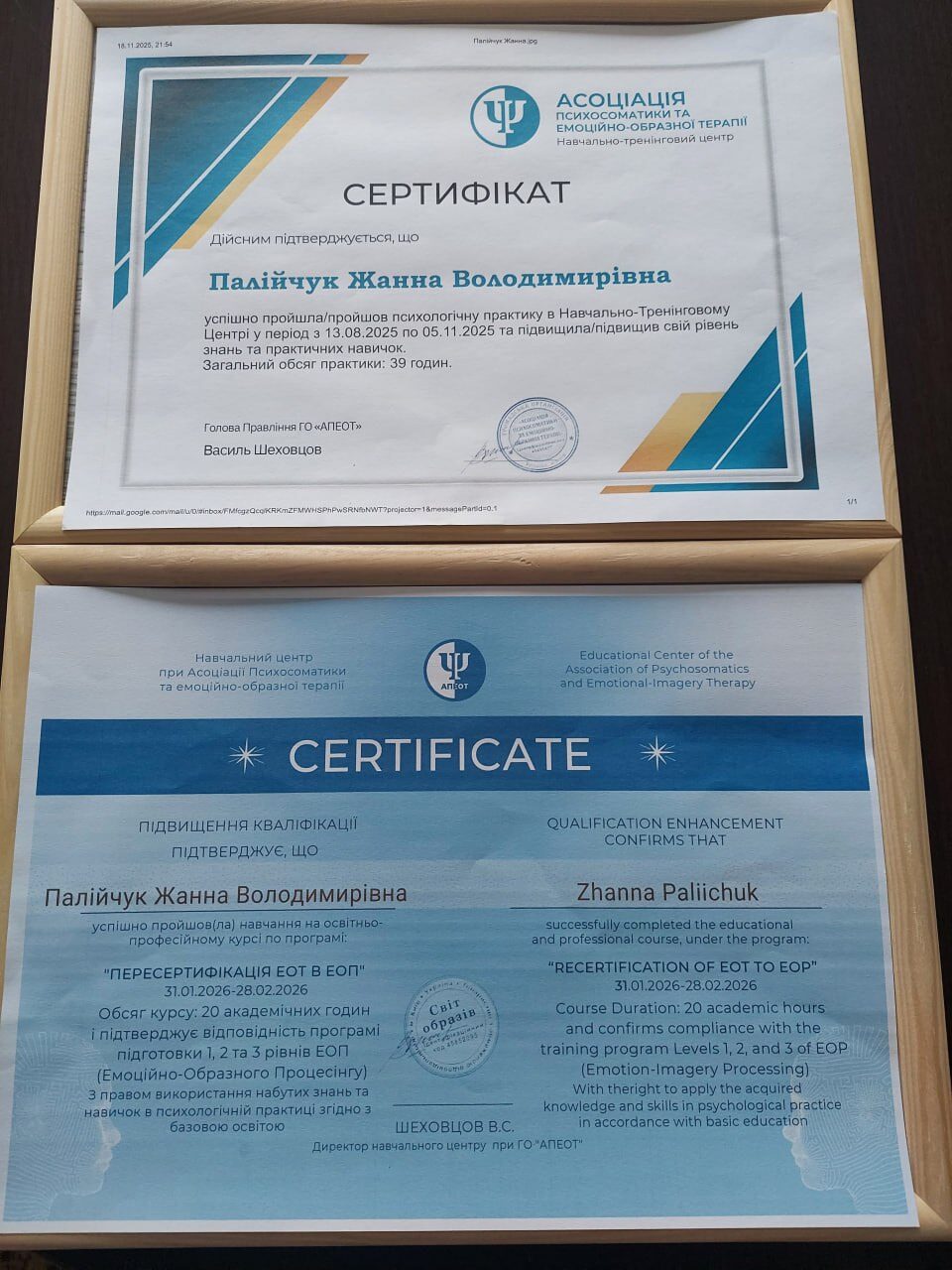 Психосоматика. Ви відчуваєте фізичний біль або напруження, хоча лікарі не виявляють причини? Знайдемо емоційні витоки Вашого стану. Кожен симптом - це форма діалогу несвідомого з людиною. Тіло і психіка - єдина система. Допоможу Вам запустити природні процеси зцілення за допомогою методу ЕОТ.